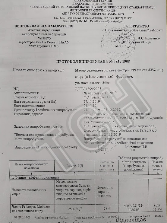 Та й після звернення СБУ Чернівецька міська рада не розірвала договір із ТДВ «Івано-Франківський міськмолокозавод» на постачання масла «Селянське» у навчальні заклади міста. Адже, як ми вже з’ясували, саме у цьому продукті порушень не знайшли.