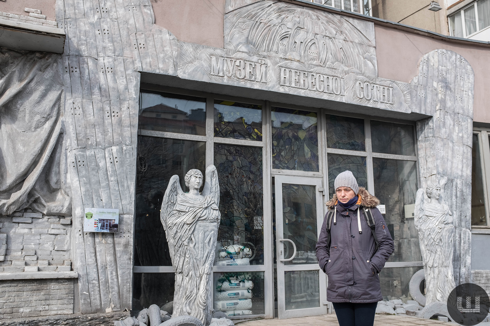 Далі маршрут пролягає до музею Небесної Сотні. Вже виходячи зі скверу, батько Ірини пропонує нас підвезти, йому по дорозі. Поки ми їдемо, Ірина продовжує розповідати про сина. Каже, Рома обожнював цукерки. У нього весь рюкзак був заповнений обгортками від смаколиків, на Майдані не викидав.
