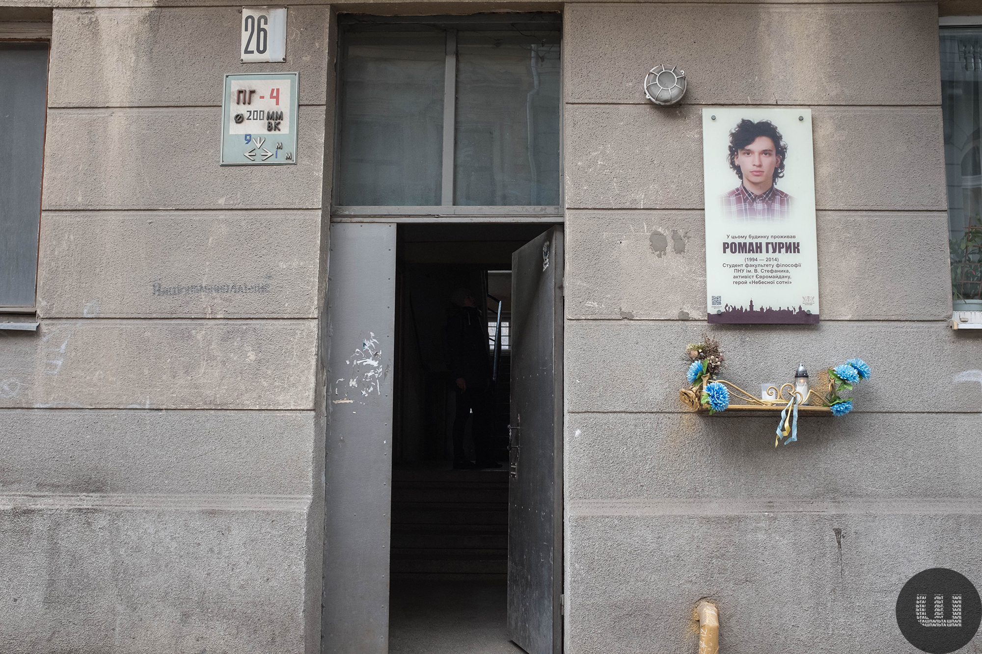 Цей будинок на вулиці Мазепи знають чи не всі франківці. Ба більше, туристи теж можуть дізнатися його особливість завдяки пам’ятній таблиці. Напис на ній свідчить, що тут мешкав студент факультету філософії, активіст Євромайдану та герой Небесної Сотні Роман Гурик. Трохи згодом я побачу ще декілька таких плит – на них зображені видатні мешканці міста, але Рома, мабуть, наймолодший із них.