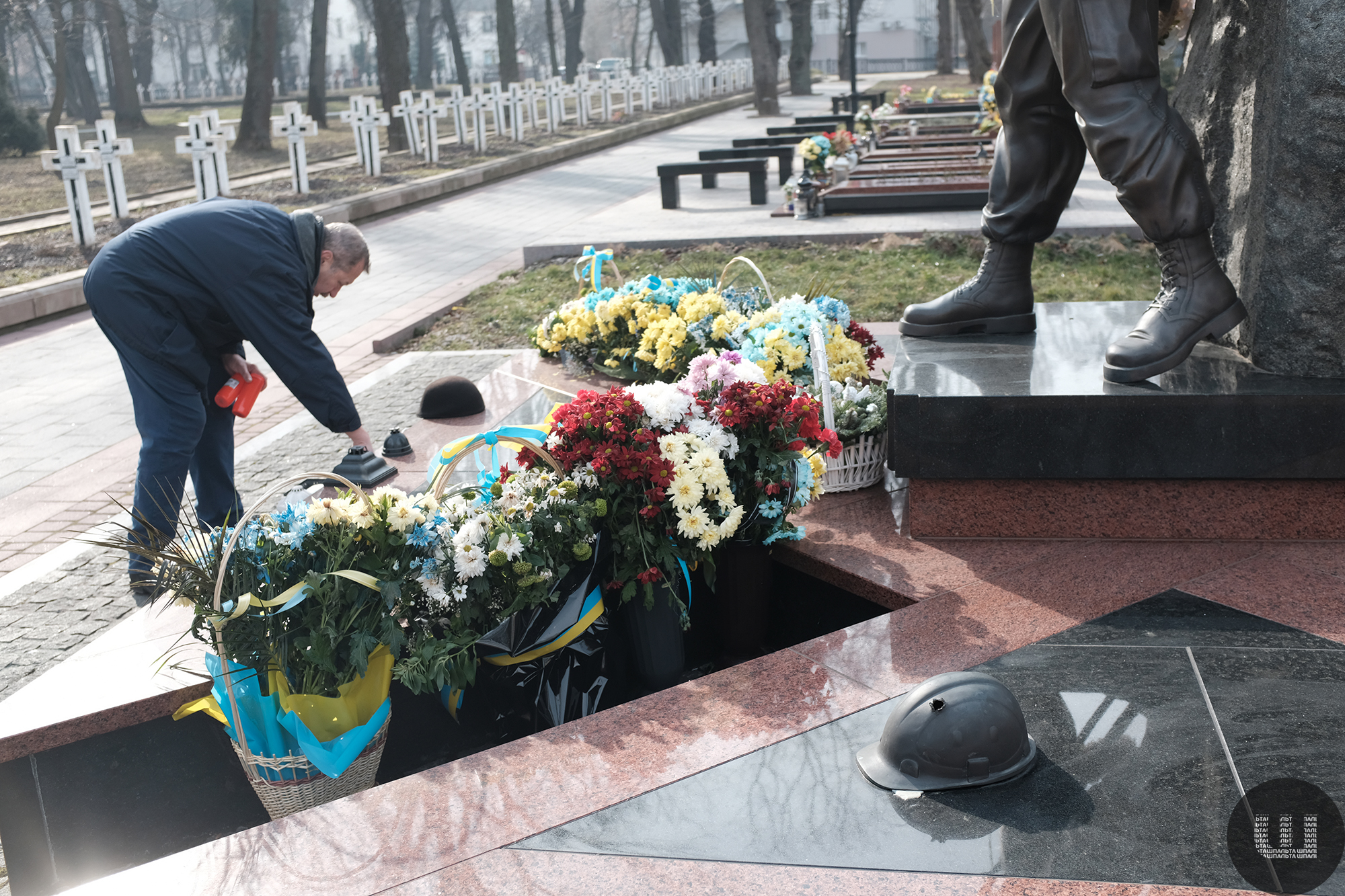 Місто не забуває про свого героя – біля нього свіжі квіти і свічки. Місце прибране та охайне. Кожен, хто проходить повз, обов’язково кидає погляд на Рому, ніби вітаючись із ним. Із лівого боку бачу ще декілька свіжих могил. Це військові, які загинули на Сході. Біля них теж квіти, теж чистота і порядок. Їх шанують.