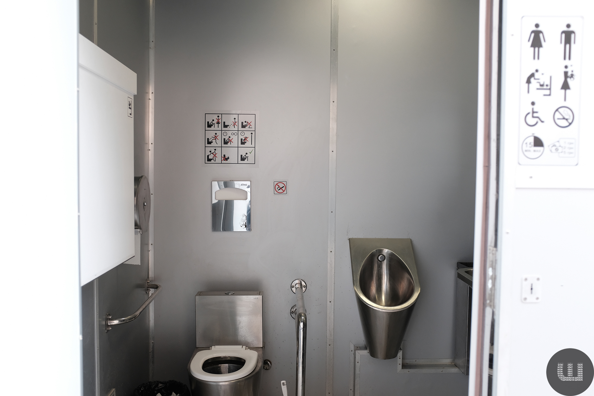 Принцип роботи дуже простий – оплачуєш у влаштованому терміналі 5 гривень, натискаєш кнопку, аби обрати кабінку. Тоді приміщення відчиняється і маєш 15 хвилин на свої справи. До речі, пеленальний столик там теж є. Щоби вийти, теж натискаєш кнопку. У разі неполадок працює виклик диспетчера.