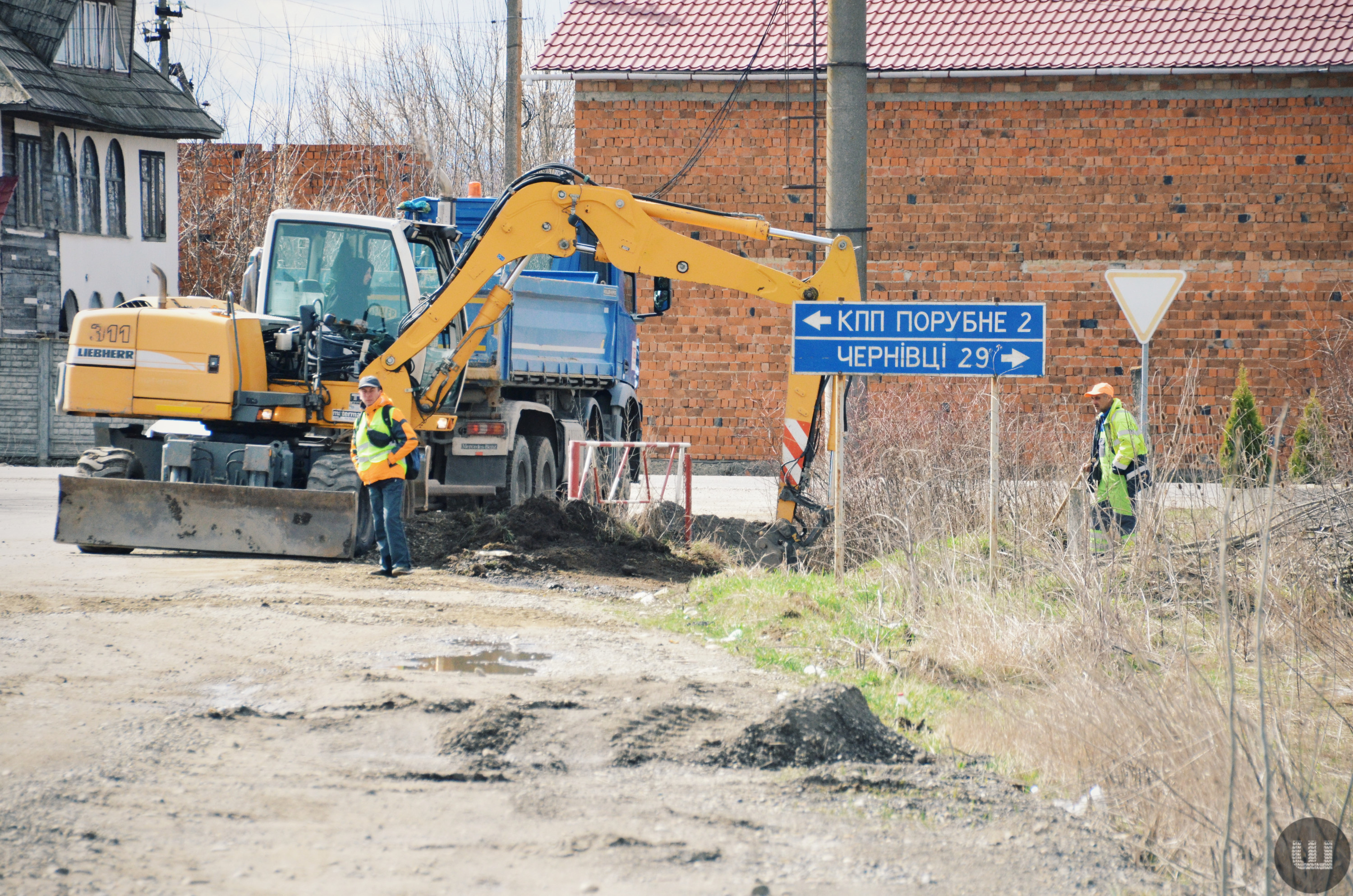 Цього разу ніхто не бажає мене підкинути, тож я дістаюся майже до траси і бачу екскаватор та декількох чоловіків у жовтій уніформі. Ті недовірливо мружаться, коли помічають фотоапарат. А водій екскаватора кричить із вікна крізь шум двигуна:
