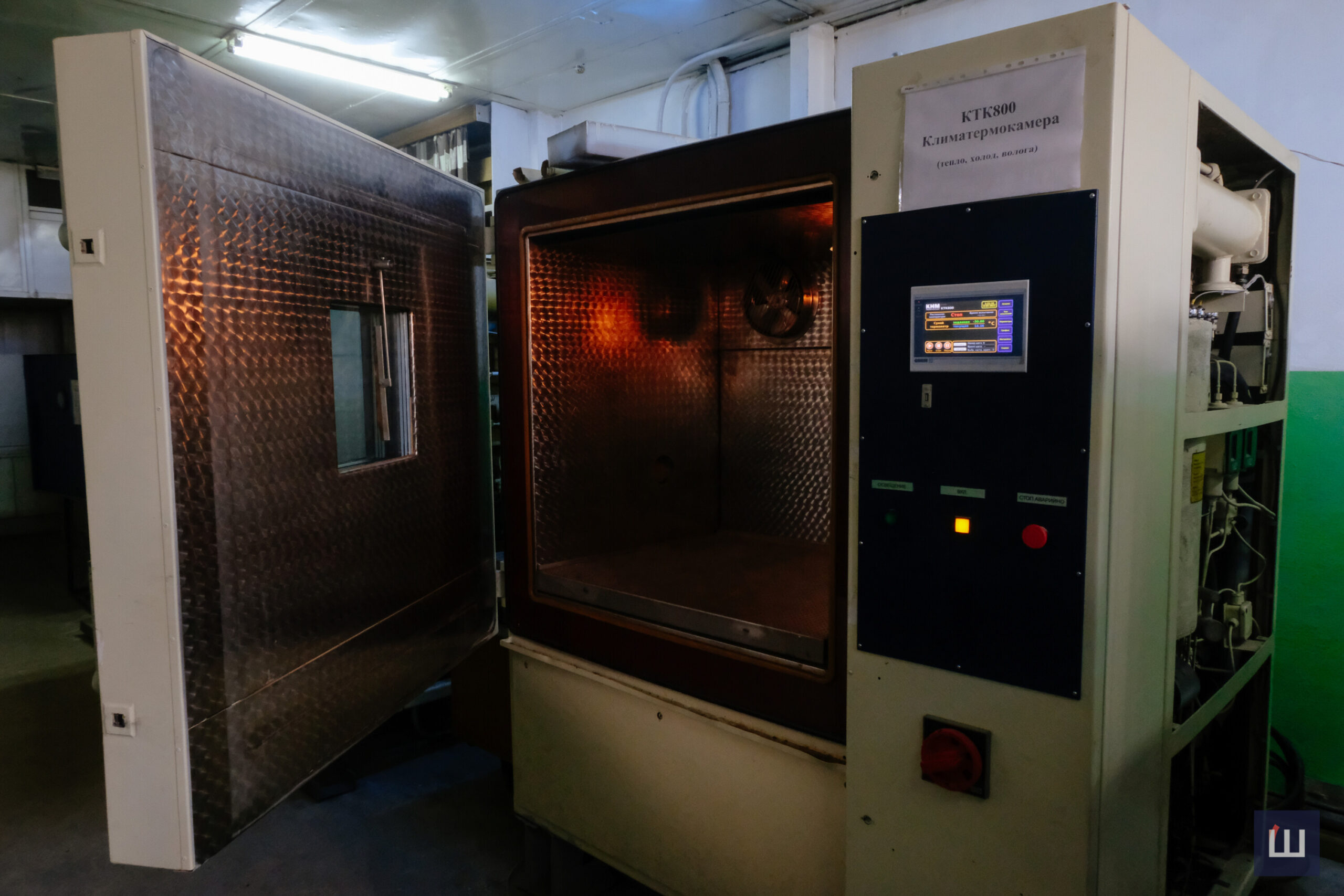Тут є відповідний відділ, де перевіряють світильники на герметичність і витривалість. У спеціальні камери завантажують світильники і задають необхідні параметри температури, тиску і вологости.
