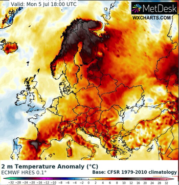 Країни Північної Європи переживають спеку. Зокрема у Лапландії (найпівнічніша, найбільша та найменш заселена провінція Фінляндії) 4 липня температура сягнула 33,6 градусів, що є найвищим показником з 1914 року.