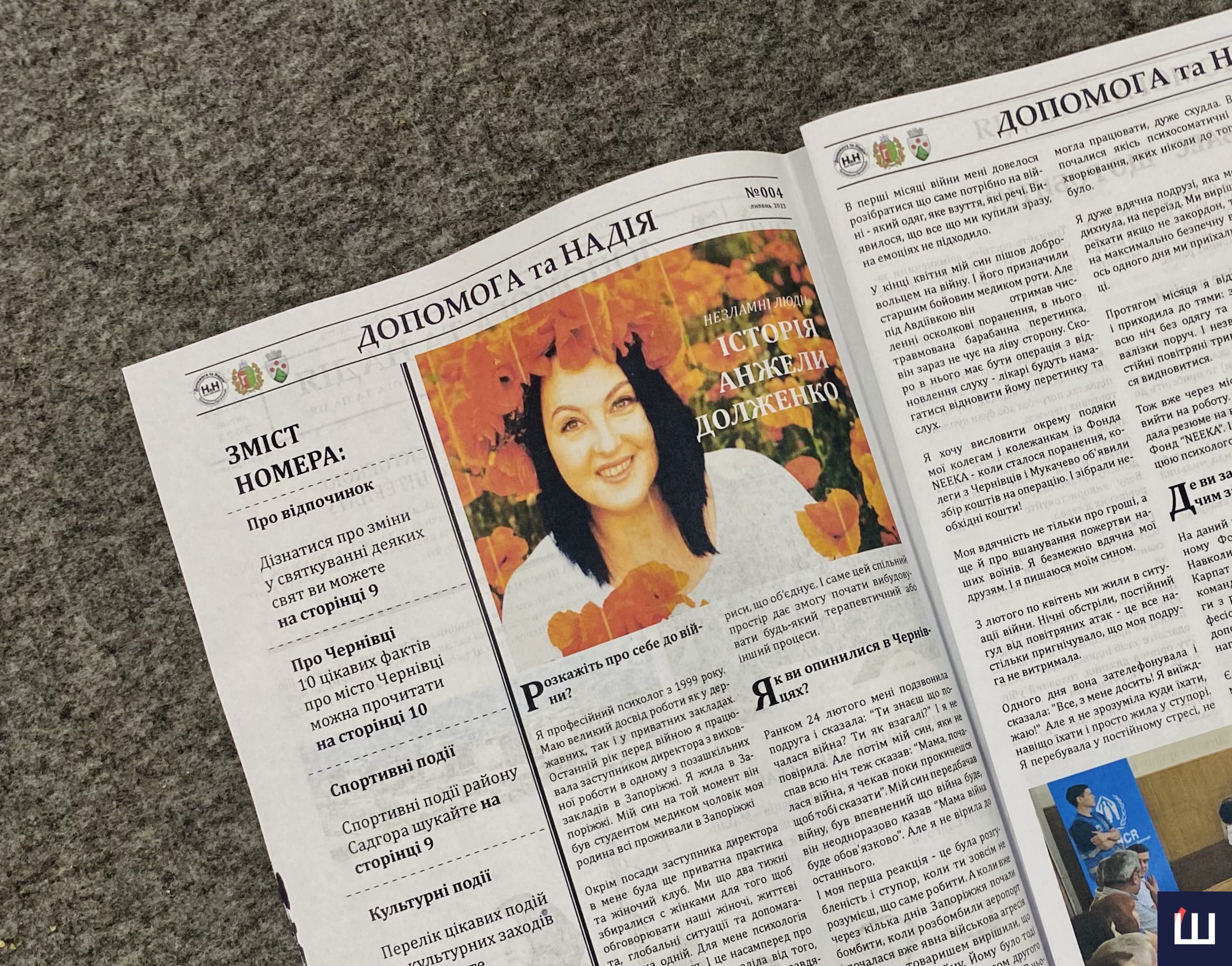 Троє вимушених переселенців на початку повномасштабної війни знайшли прихисток у Чернівецькому обласному центрі соціально-психологічної допомоги у Садгорі. Тут вони вирішили заснувати громадську організацію «Допомога та Надія», щоб допомагати місцевим ВПО. Цьогоріч у них виникла ідея створити безкоштовний інформаційний вісник – газету для місцевих переселенців, яку вони друкують та видають власними силами.