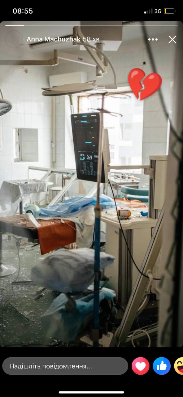«Мене разом з анестезисткою Аліною Шовкун відкинуло вбік. І через нас пролетіли хірурги, інструменти, вікна. Всіх розкидало по сторонах. Перші 5 секунд нам знадобилося, аби зорієнтуватися, що відбулося. Розуміли, що це приліт, але не знали куди – чи це нижні поверхи, чи сусіднє приміщення. Першим на думку спало: “Зараз буде наступний приліт”», – пригадує анестезіолог.