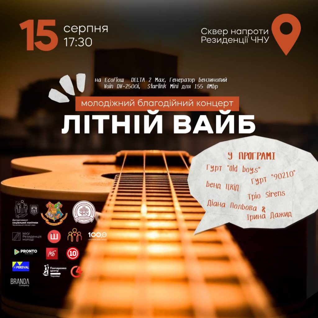 15 серпня у Чернівцях пройде молодіжний благодійний концерт «Літній вайб», приурочений до Міжнародного дня молоді.