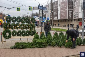 На проспекті Незалежності, крім ялинок, ще продають новорічні прикраси та вироби з хвої.