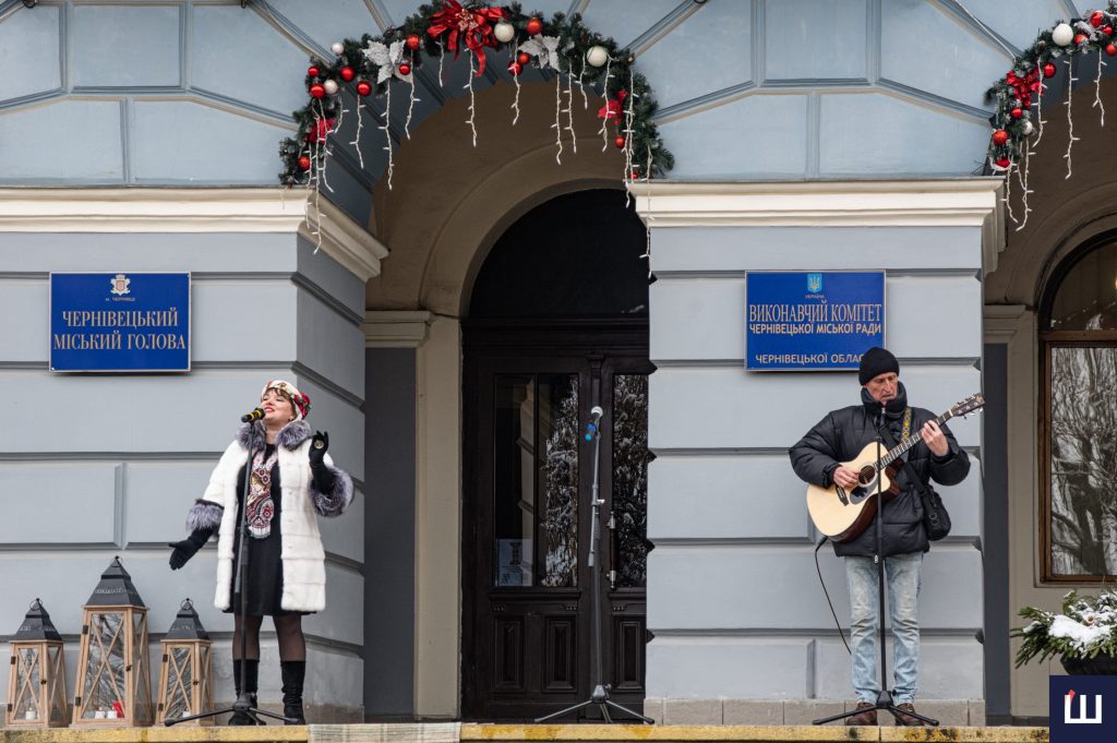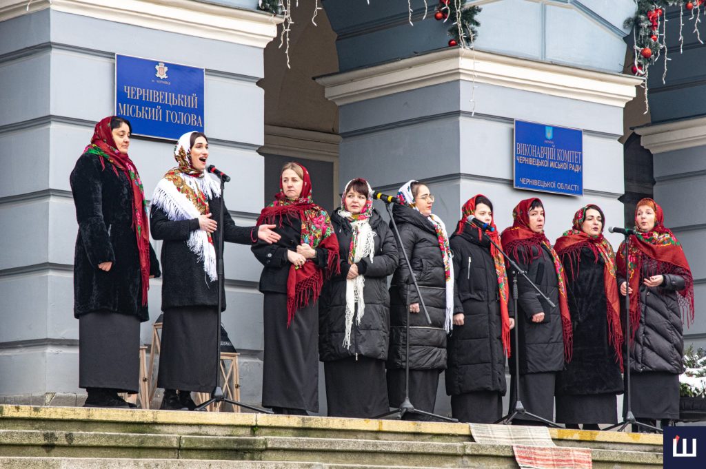 А далі професійні та аматорські творчі колективи та соло артисти співали автентичних й сучасних колядок. Буковинців та гостей міста вітали сучасними композиціями та узвичаєними віншуваннями вихованці місцевих музичних шкіл та будинків культури.
