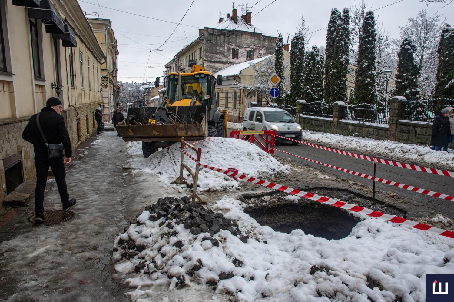 Після усунення пошкодження провалля засиплють, ґрунт утрамбують, а згодом відновлять покриття бруківкою.