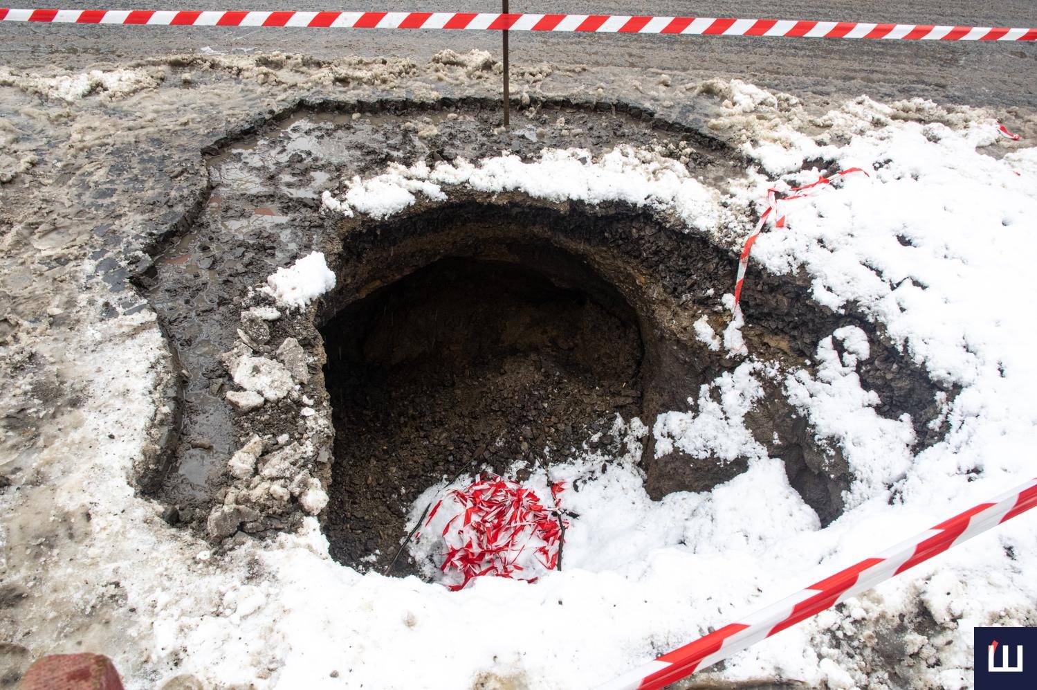 Внаслідок пошкодження вода з мережі вимила ґрунт, що й призвело до утворення провалля.