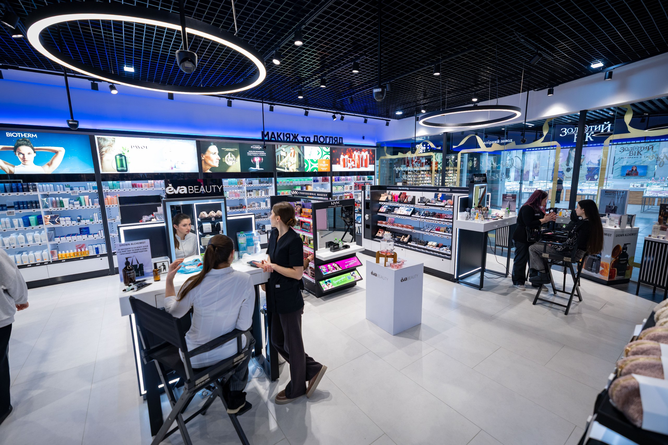 EVA BEAUTY — це 520 м² торгівельної площі, понад 20 тисяч позицій товарів і принципово інший підхід до вибору косметики. Тут зібрані декоративна косметика, дерматокосметика, професійний догляд за волоссям, нішеві аромати, гаджети та spa&wellness — від доступного масмаркету до люксових і селективних брендів.