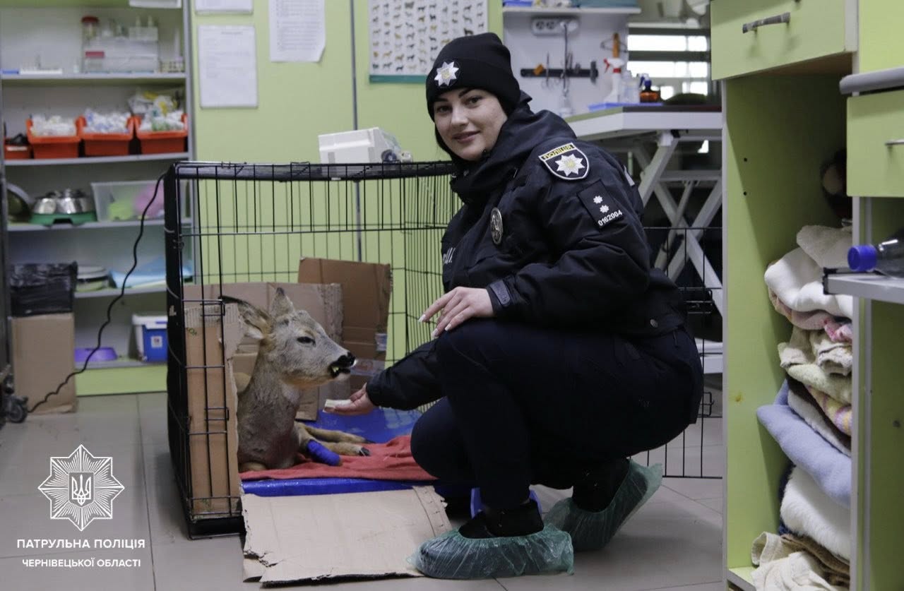 Поліцейським надійшло повідомлення про поранену тварину. Тож патрульні Юрій Борук та Анжела Маковійчук знайшли козулю, яка вже була знесилена й не могла рухатися. Її швидко доправили до ветеринарної клініки, де надали допомогу та взяли під опіку.