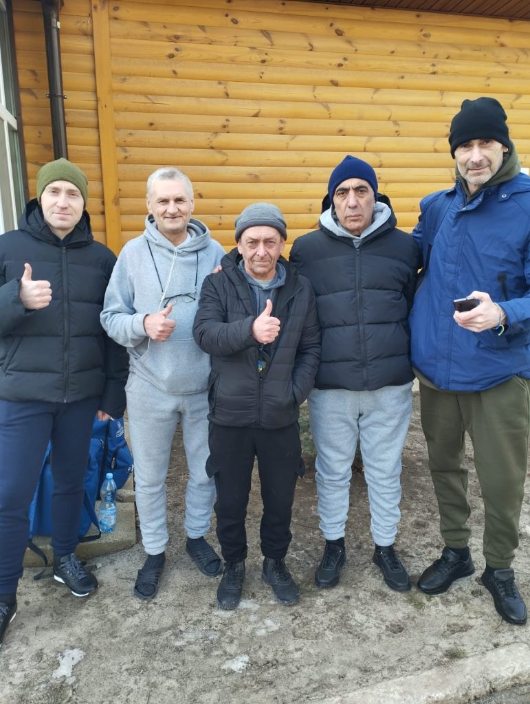Колишні військовополонені 109-ї бригади ТрО на реабілітації (санаторій НГУ «Нові Санжари, лютий 2024-го). Фото надав Олег Онишко