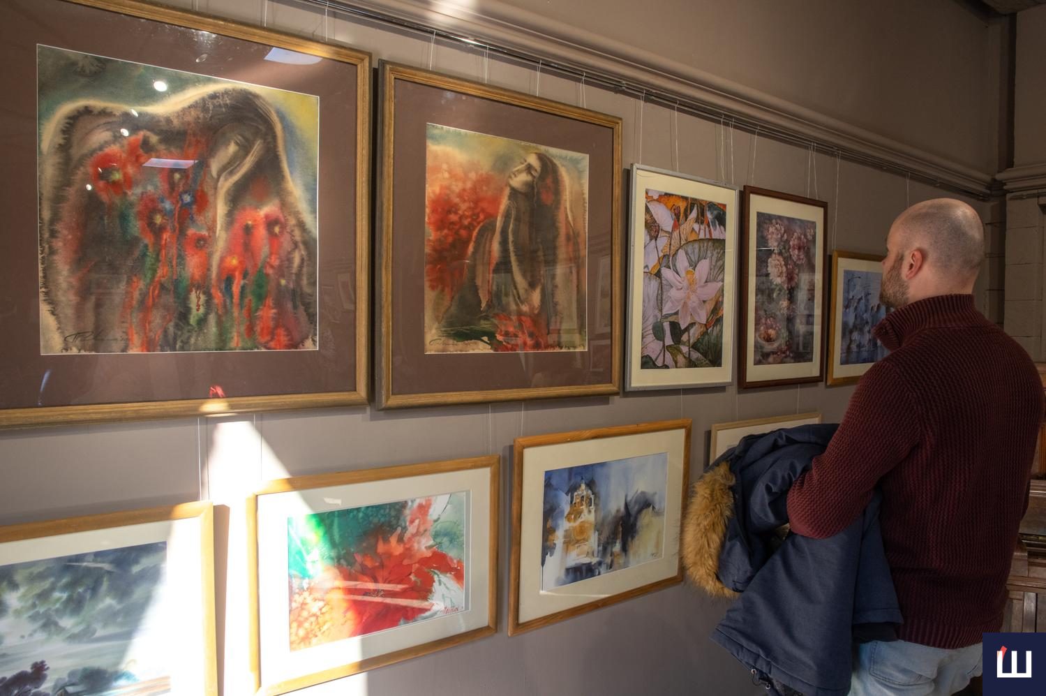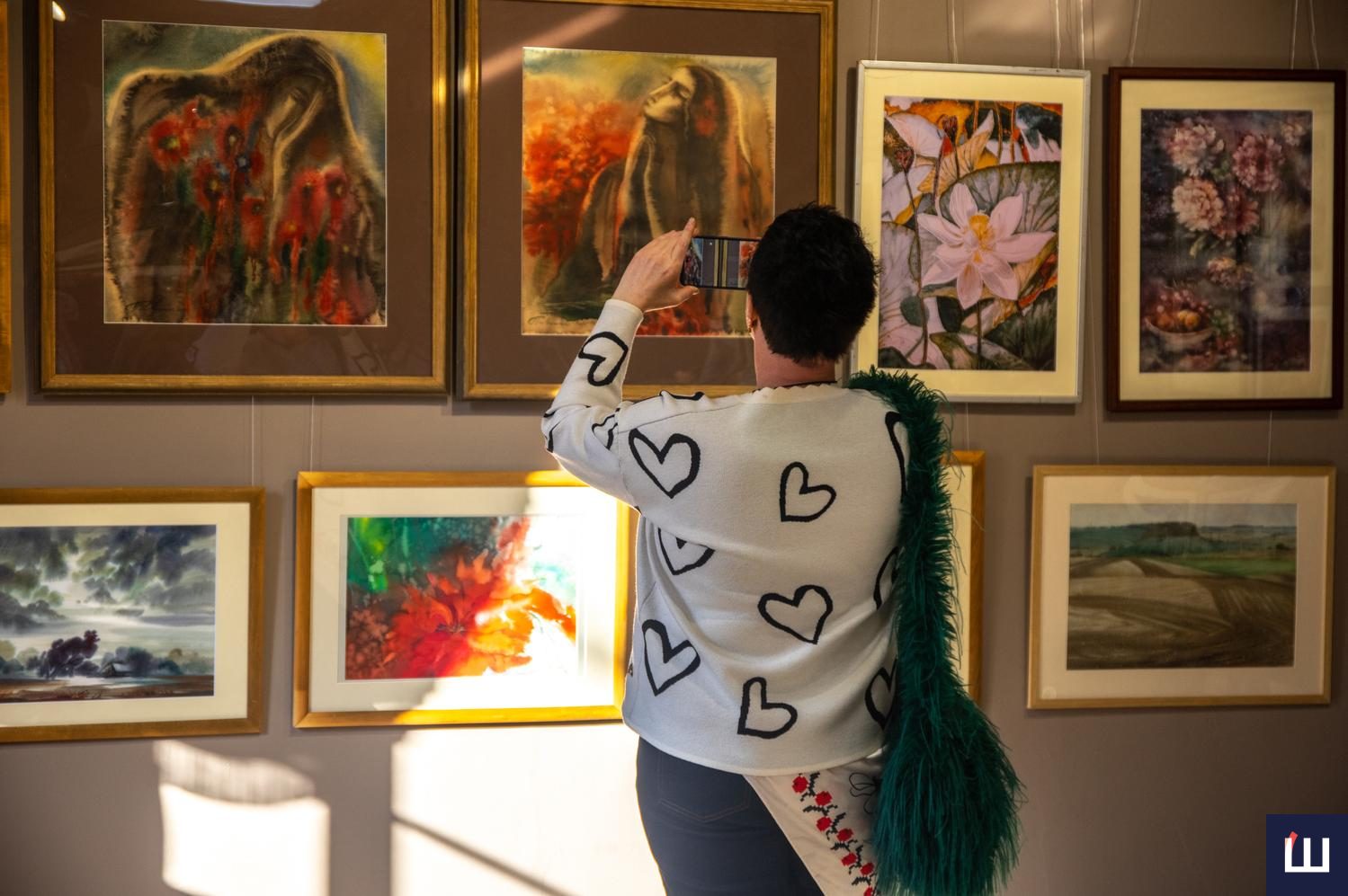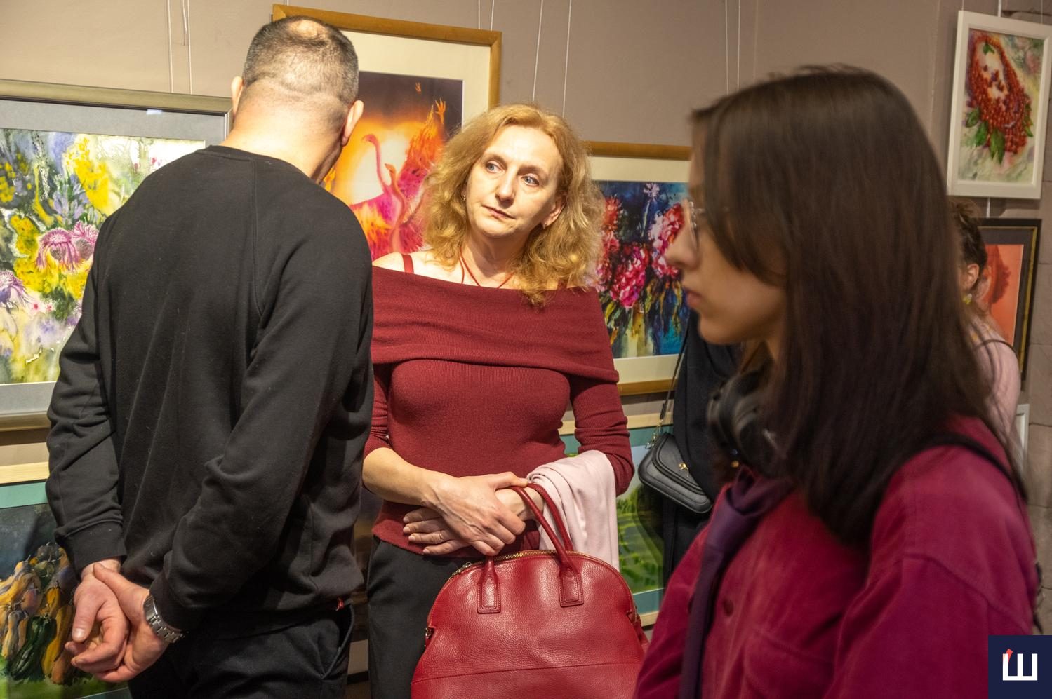 Під фортепіанний акомпанемент та музичні композиції від співачки та мисткині Руслани Шевельової відвідувачі мали змогу особисто поспілкувалися з художниками. Присутні знимкували імпресіоністські пейзажі, натюрморти, портрети, акварельні архітектурні замальовки, абстракції. Крізь більшість полотен лейтмотивом проходив багряний колір: десь фоном, десь акцентом, десь ведучою барвою ᅳ універсальною мовою кохання.