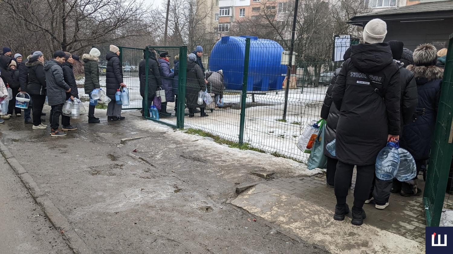 Міська рада організувала довіз технічної та питної води адресно під будинки по вулиці Руській. Сьогодні ж містяни вишикувалися у черги біля бочок та автоматів: хтось з п’ятилітровими пляшками, хтось з відрами, хтось приїхав з кравчучками. Жителі Гравітону беруть з собою, як мінімум, по дві тари.