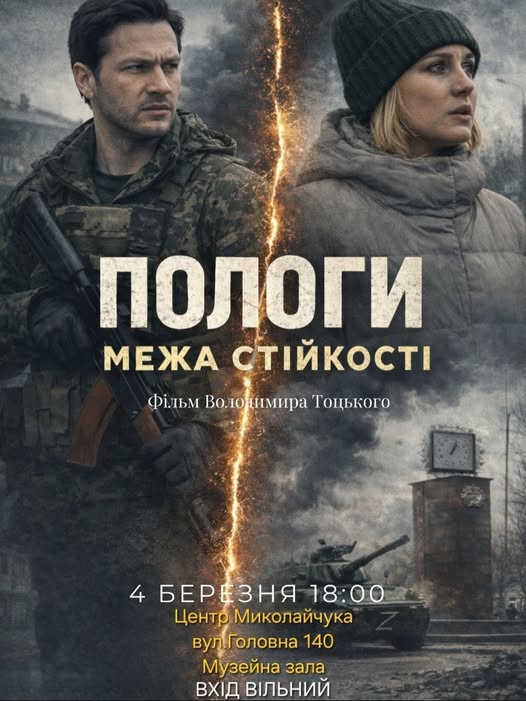 У Культурно-мистецькому центрі імені Івана Миколайчука 4 березня презентують прем’єру короткометражного фільму «Пологи. Межа стійкості». Початок о 18:00 у малій залі Центру. Вхід безкоштовний.