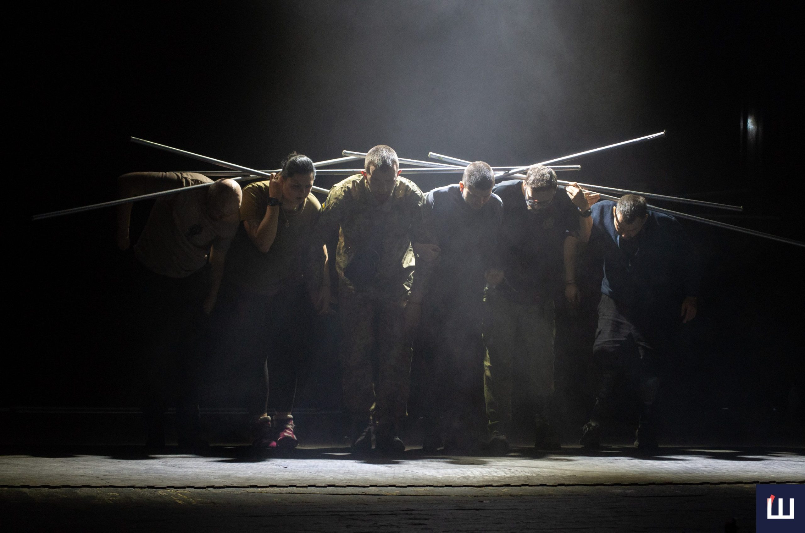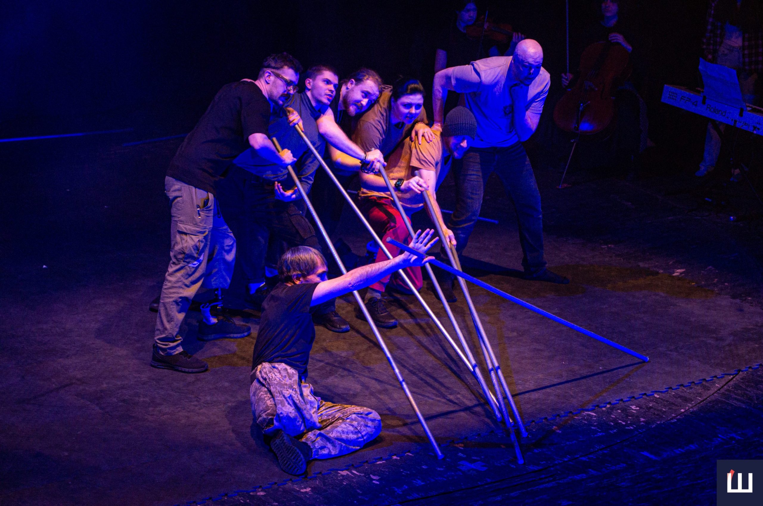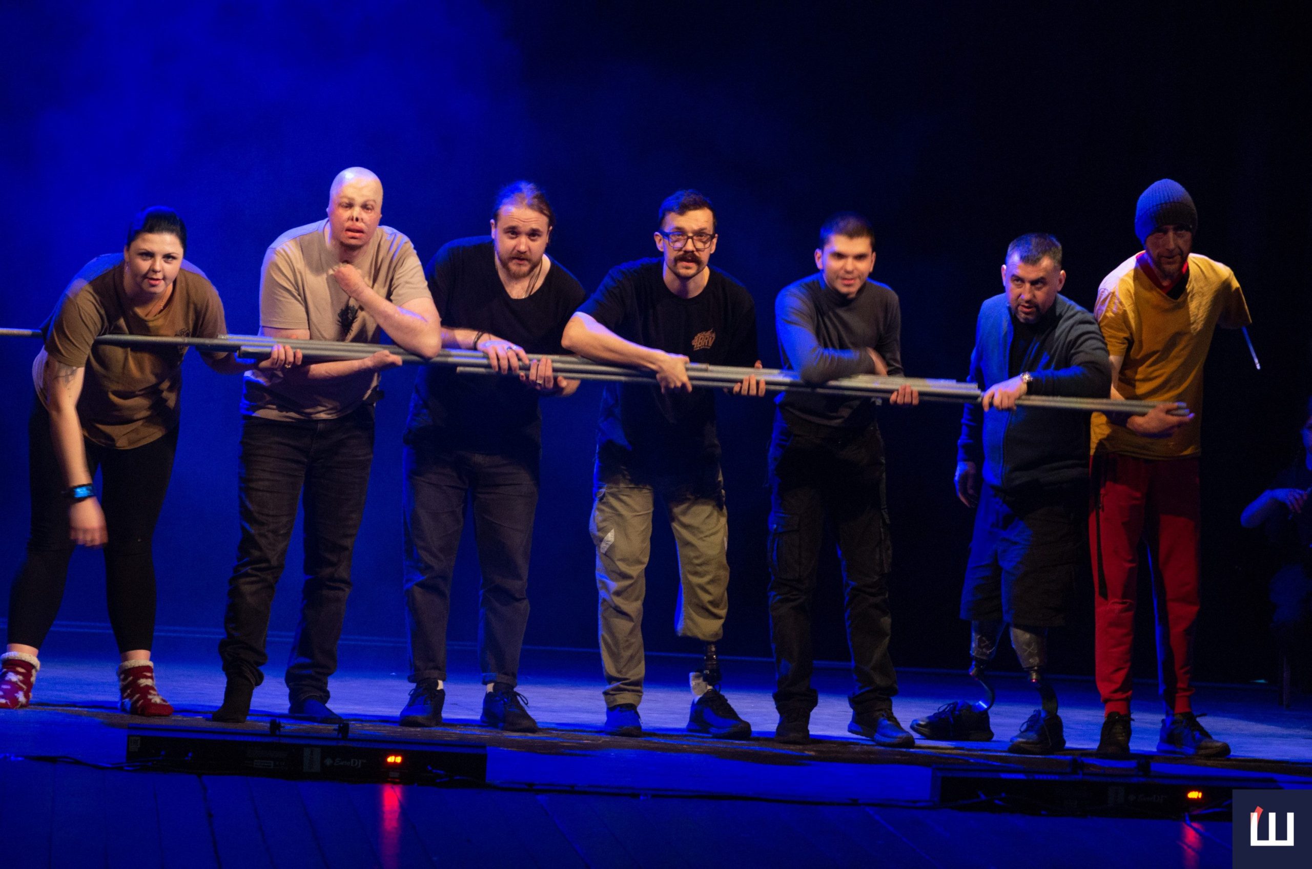 На сцені — чинні військовослужбовці та ветерани російсько-української війни. Дехто з них — на протезах, із важкими пораненнями, але з тією внутрішньою силою, яку складно передати словами. Вони не грають війну — вони її прожили.