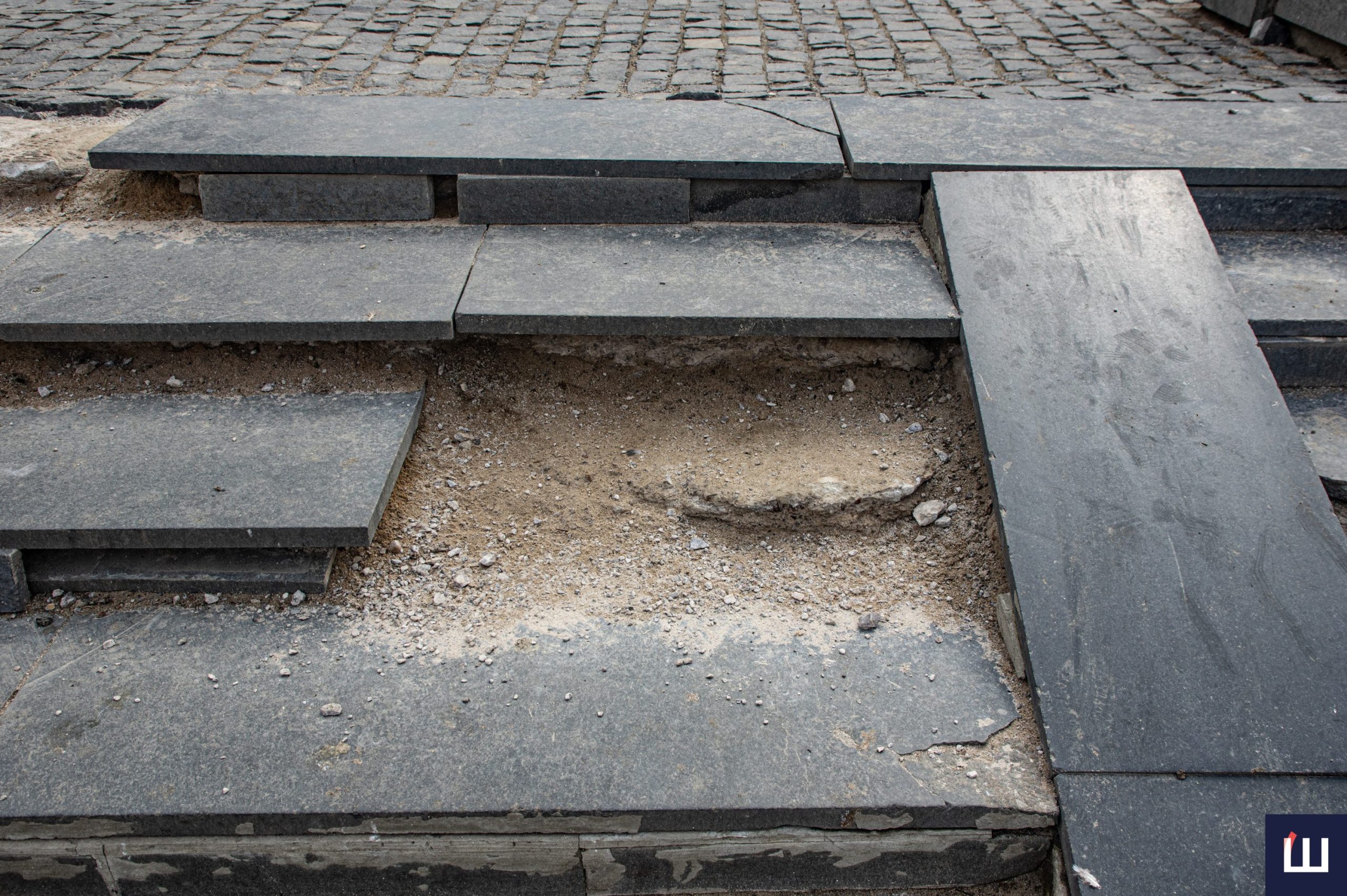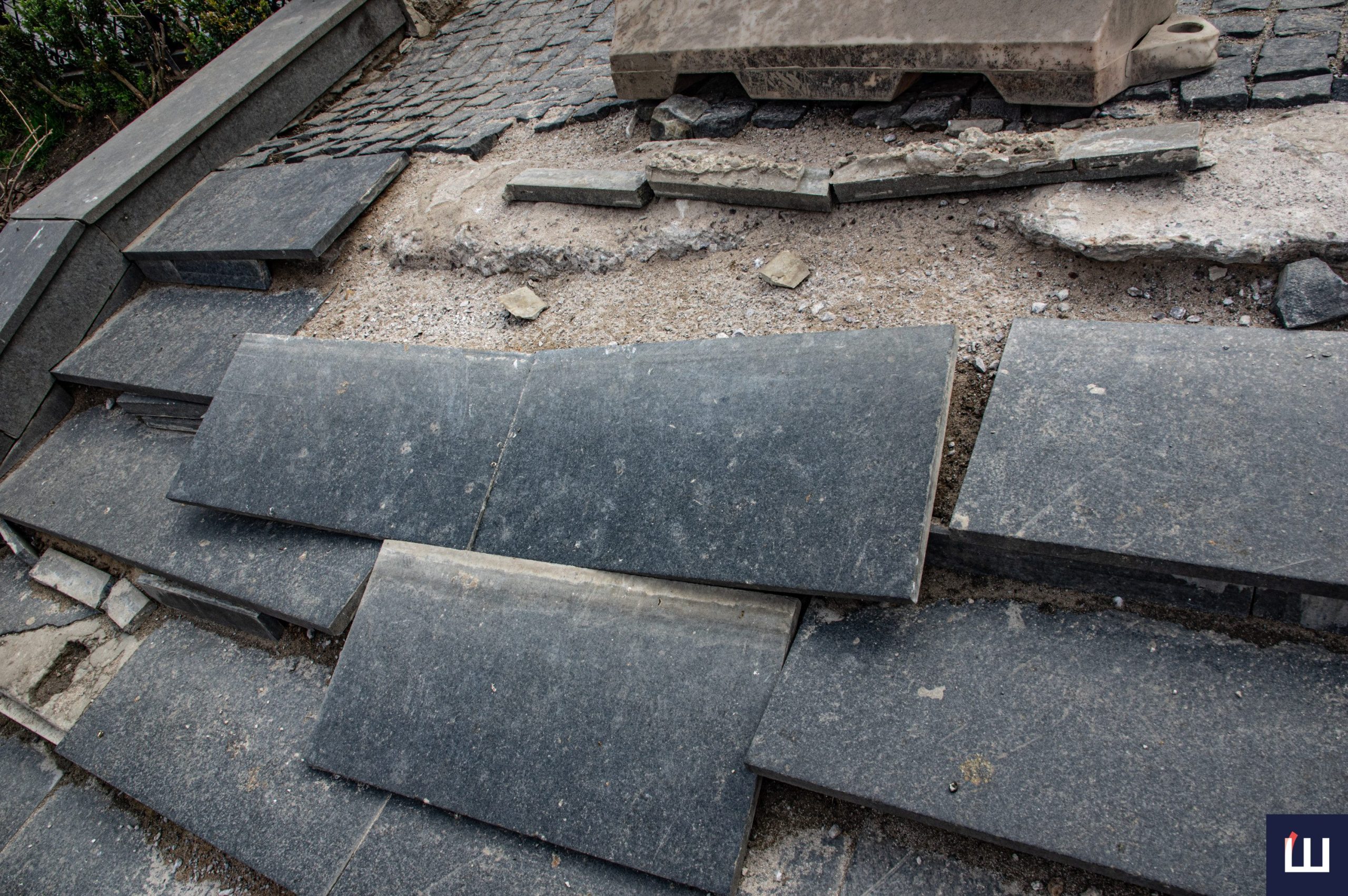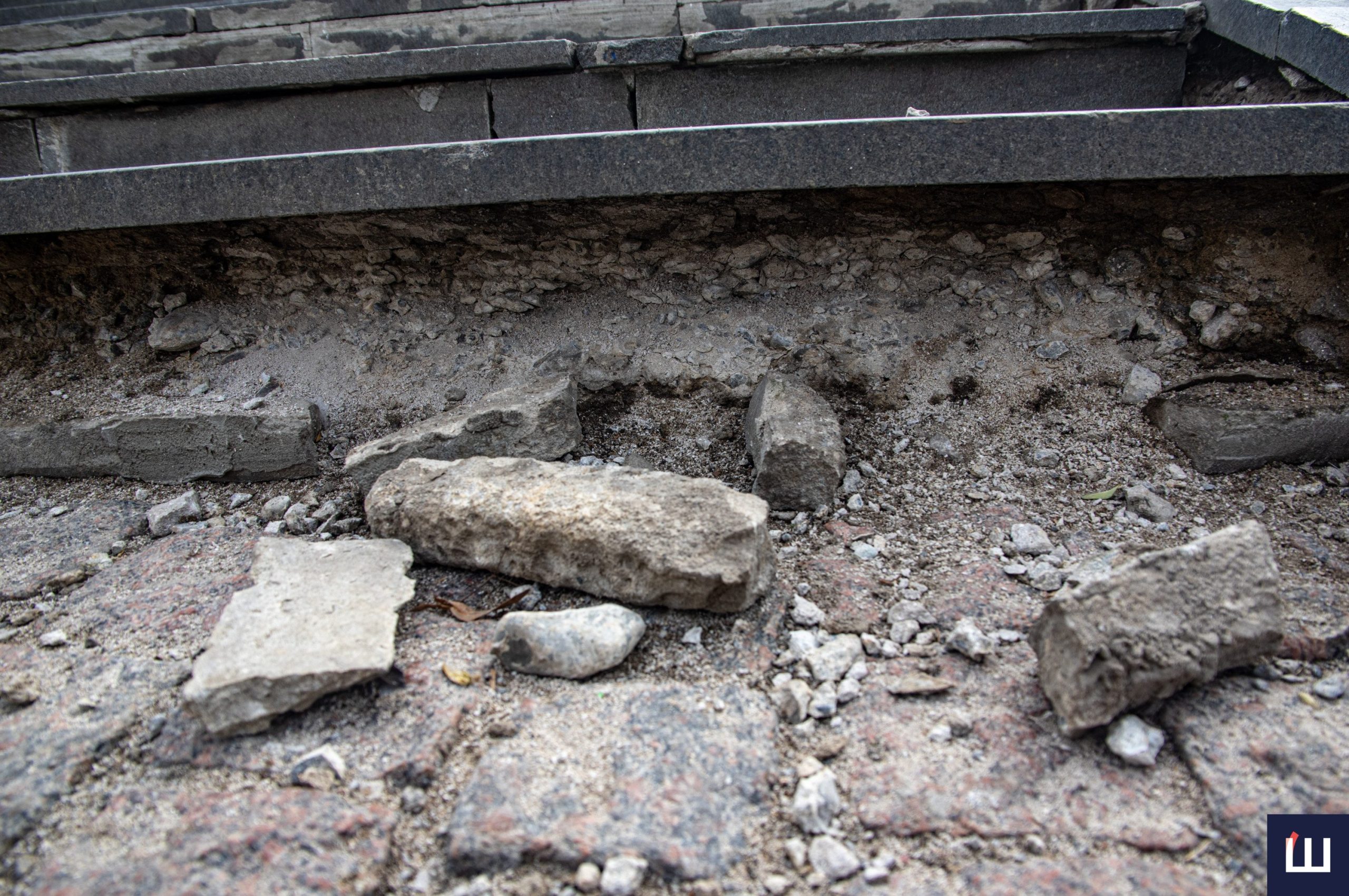 У центрі Чернівців майже повністю зруйновані сходи на площі Філармонії. Деякі плити повністю зняті, інша частина – на місці, але пошкоджені перегородки, які зʼєднують сходинки між собою.