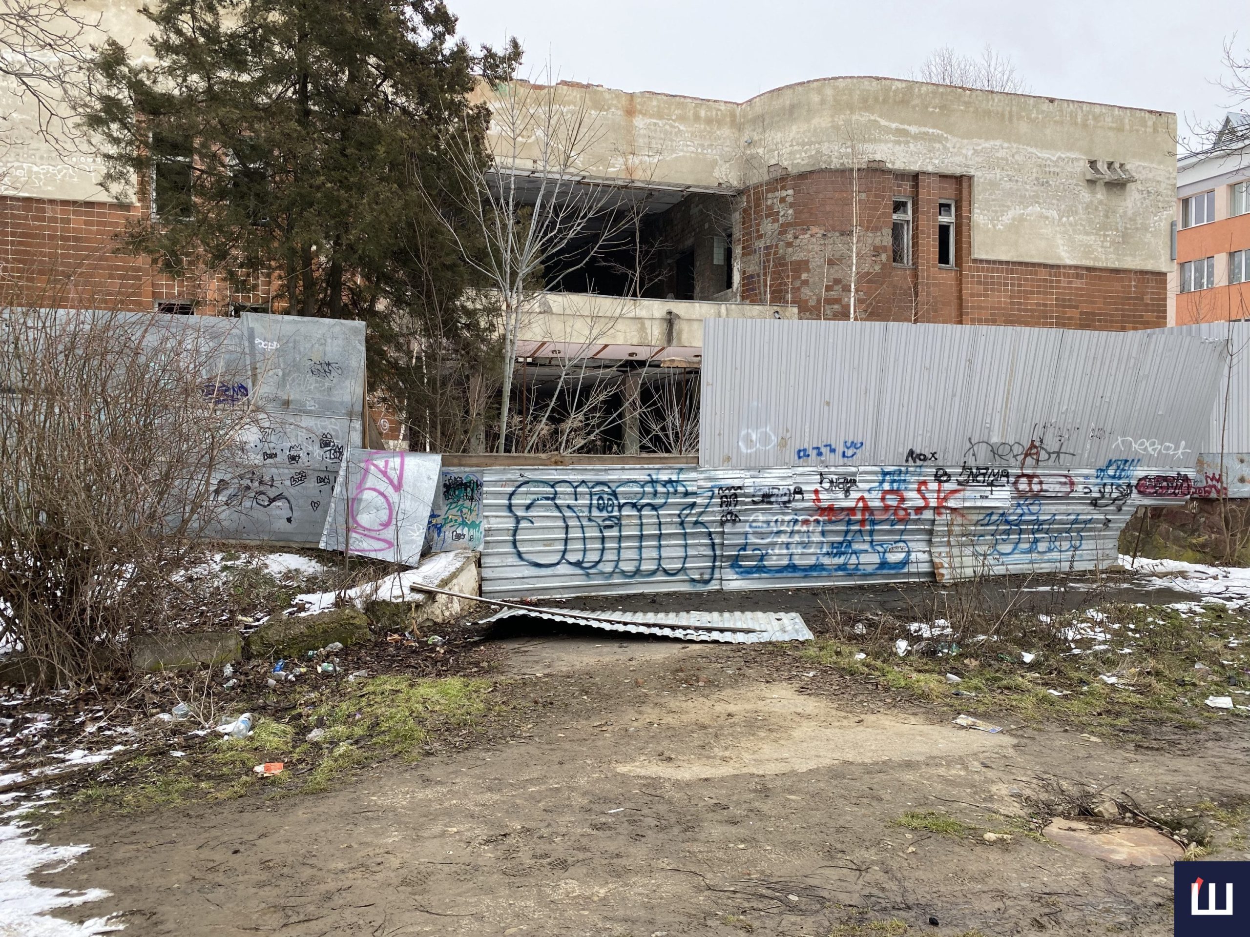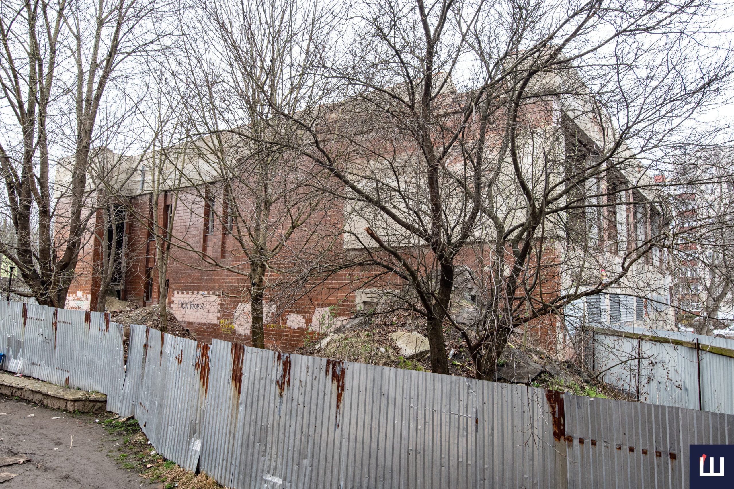 Зовні споруди паркан досить добре обставлений. Однак не настільки, щоб зупинити охочих потрапити туди. Частину огорожі спереду вже пошкодили, а трохи далі можна помітити й невиликий отвір. Є припущення, що туди хтось заходить.