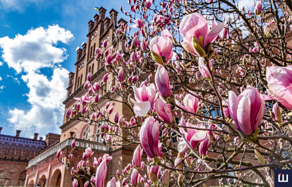 У Чернівцях зацвіли магнолії — одні з перших провісників весни. Ніжні квіти розпустилися на території колишньої Резиденції буковинських митрополитів, де щороку збираються містяни й туристи.